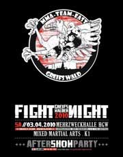 Diese Informationen sind wichtig, um zu verstehen, was für eine Veranstaltung am 03.04.2010 in der Greifswalder Mehrzweckhalle stattfinden wird. Unter dem Titel Erste Greifswalder Fight Night werden 14 Kämpfe in den Stilen Freefight, Kickboxen und K-1 stattfinden.