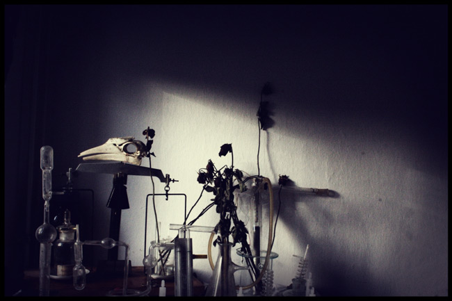 Viele Monate lang war das Institut unser Ein und Alles. Wir nahmen nichts mit, wir beschädigten nichts, aber wir gestalteten unser neues Zuhause nach Herzenslust. Aus den vielen herrenlosen Schrankwänden bauten wir ein Labyrinth. Wir richteten ein gemütliches Wohnzimmer ein, bastelten absurde Skulpturen aus altem Laborzubehör, stöberten in den immensen Beständen an Büchern, biologischen Modellen und eingelegten Tieren. Wir machten Fotos und gaben Freunden Führungen. Zu Ostern nutzten wir die riesigen Laborräume als Versteck für Osternester.