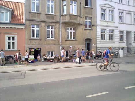 So banal das Kuriosum „Flohmarkt“ erstmal daherkommt, so hinreißend waren viele Reaktionen der profithungrigen Standbetreiberinnen und der einkaufswütigen Flaneure in den beiden Vorjahren. Das Konzept hat sich bewährt, und von Jahr zu Jahr wuchsen nicht nur die Zahl der teilnehmenden Haushalte, sondern auch die Zahl der Besucherinnen. Die Fleischervorstadt schien auf den Beinen und in Bewegung gesetzt. Mancherorts wurde das Angebot aus den Kellerschätzen auch durch lukullische Offerten ergänzt – erinnert sei hier exemplarisch an den Köftestand des Vorjahres, der viele Gemüter in Begeisterung versetzte.