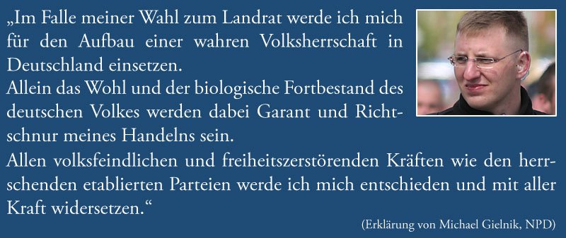 Gielnik rückte erst diese Woche erneut ins mediale Licht, weil seine Beschwerde gegen die Nichtzulassung als Landtagskandidat abgewiesen wurde. Er verweigerte das Bekenntnis zur freiheitlich-demokratischen Grundordnung und bot stattdessen eine Alternativerklärung an, in der er keinen Hehl aus seiner antidemokratischen Einstellung machte.