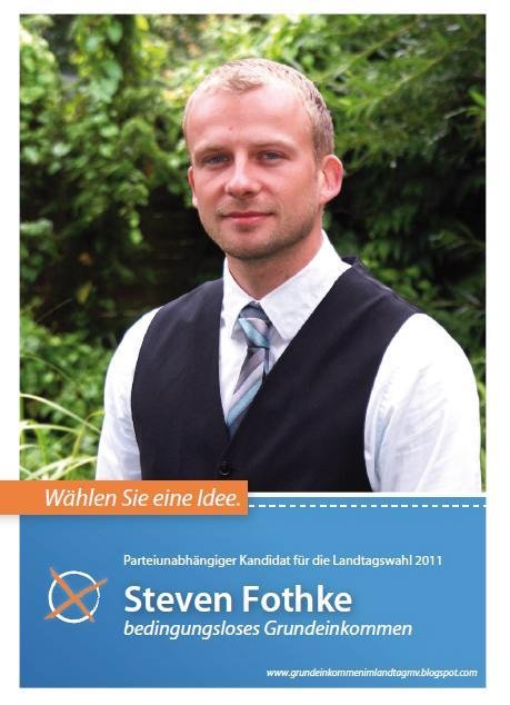 Bei der bevorstehenden Landtagswahl wird in Greifswald der parteilose Einzelkandidat Steven Fothke (SF) antreten, der sich gemeinsam mit seiner Verlobten Ly Dang (LD) für die Einführung des bedingungslosen Grundeinkommens (BGE) engagiert. Vorgestern führten wir ein Gespräch über Erwerbsarbeit und Grundeinkommen, den Einzelwahlkämpfer Fothke und dessen Finanzierung, über seriöses Auftreten und das Gefühl, Teil einer Idee zu sein.