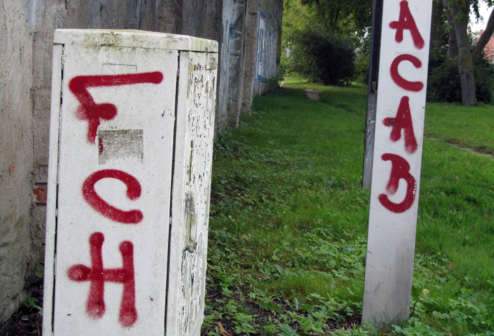 Mal sind es die Bullen („A.C.A.B.“), mal Menschen in den alten Bundesländern („Wessis aufs Maul“), mal Fans anderer Vereine oder Vereine selbst („Scheiß St. Pauli““) oder jetzt eben der Fleischervorstadt-Blog mit seinen kommentierenden LeserInnen.