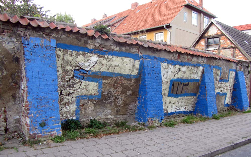 PS: Demjenigen Idioten, der die schiefe Mauer in der Schützenstraße bemalt hat, gehört allerdings die Hose straff gezogen. Das ist respektlos und kulturlos.