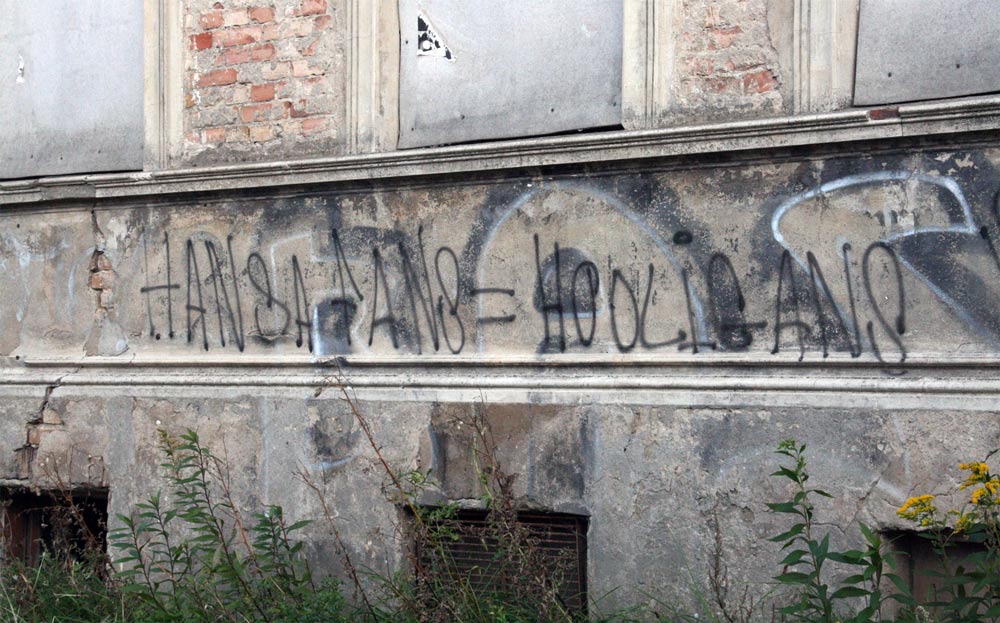 Was mich am meisten ankotzt an diesen Hanse-Hirnis ist jedoch, dass noch über 20 Jahre nach der Wiedervereinigung Deutschlands ein Ost-West-Konflikt herbeigeredet wird. Wenn ich Graffitis sehe wie „Wessis aufs Maul“, „Wessis jagen“ etc. kommt mir das Kotzen!!!!!!!!
