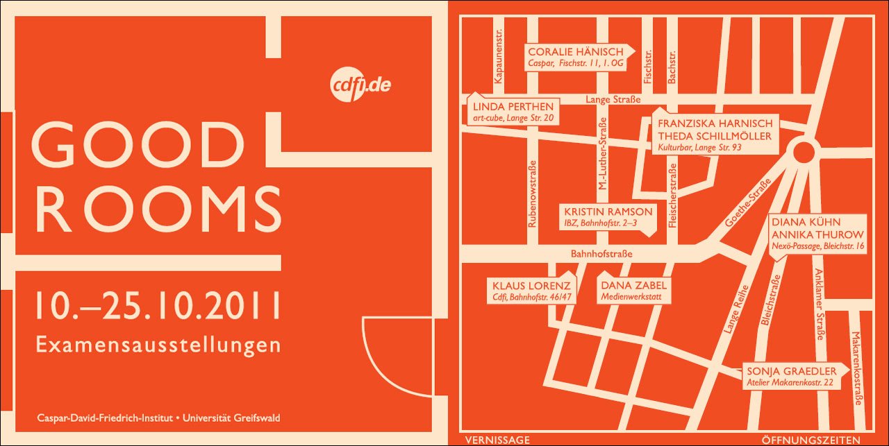 Der Arbeitstitel, unter dem alle Präsentationen zusammengerückt werden, lautet Good Rooms. Es sind die guten alten Räume, die mit den Ausstellungen bespielt werden, wie zum Beispiel die Medienwerkstatt, das Caspar, die Nexö-Passage oder das Internationale Begegnungszentrum Felix Hausdorff. Neue Orte sind kaum dabei, abgesehen von art-cube und der Kulturbar.