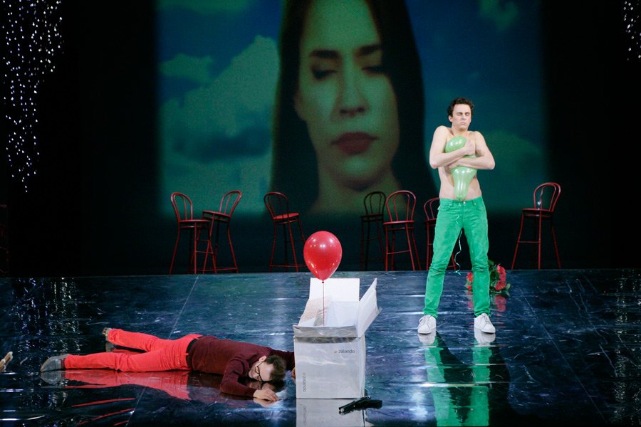 In der Inszenierung am hiesigen Haus, welche am Samstag Premiere feierte, gelingt es dem Regisseur und designierten Oberspielleiter Andrè Rößler leider nur, diese Begriffe — wenn überhaupt — oberflächlich zu behandeln. Trotz vieler inszenatorischer Einfälle — wobei einige das „klassische“ Greifswalder Publikum sicher einer Geduldsprobe unterzogen — gelingt es nur selten, dass die erzeugten Bilder der Inszenierung Emotionen transportieren, geschweige denn auslösen können.