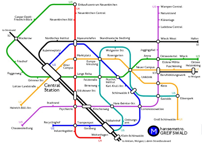 Mit der hansemetro Greifswald liegt jetzt ein nahezu ausgereiftes, bislang streng geheimes Konzept für ein solches Verkehrsnetz vor, mit dem sich die Attraktivität der Hansestadt „astronomisch steigern“ lassen soll. Im Zuge dieser Planungen wurde bereits ein mögliches Streckensystem erdacht, das einen Großteil des Greifswalder Stadtgebietes umfasst und darüber hinaus das Umland mit der Hansestadt verbindet.