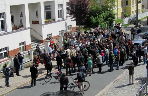 In der Robert-Blum-Straße erinnerte ein Schüler der Martin-Schule mit einer kurzen Rede an das Schicksal von Alice Margarethe Weissmann und Paula Gabriele Sichel, die beide am 6. Oktober 1943 nach Theresienstadt deportiert wurden und dort ums Leben kamen. Unter den Gästen waren unter anderem Oberbürgermeister Arthur König (CDU) der neue Prorektor der Universität, Eckhard Schumacher, sowie Christine Dembski, Koordinatorin des Präventionsrates.
