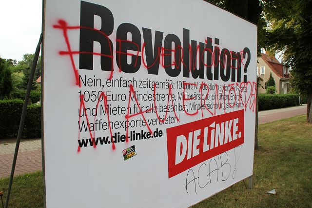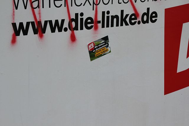 Schön auch, dass sie beim LINKE-Plakat zweimal ansetzen mussten, um das Wort ‚Mauermörder‘ korrekt zu schreiben. AAUERMÖRDER steht ja oben. Waren die besoffen?