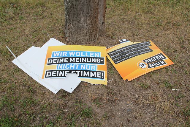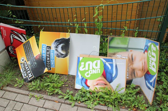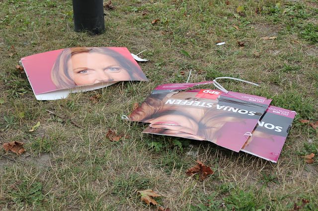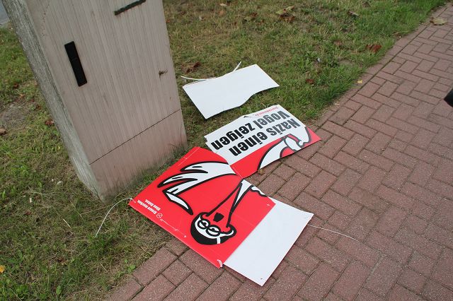 In der vergangenen Nacht haben Neonazis erneut Wahlplakate der demokratischen Parteien zerstört oder beschmiert. Die Täter wurden bei ihrem Treiben beobachtet — nun ermittelt die Polizei.