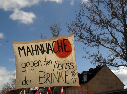 Mich erregt nur diese Einstellung und diese Demo. Es wird (unter dem Motto) gegen den Abriß der Brinke demonstriert, als wäre die Sache offen oder gar von den Leuten zu beeinflussen. Es ist kein Verbrechen, den Bau abzureißen, der Investor hat sich sogar auf die Ini eingelassen. Die Ini tritt aber öffentlich eher gegen des Investors Bein, dabei sind da doch Leute dabei, die angeblich Ahnung von Vermittlung haben.