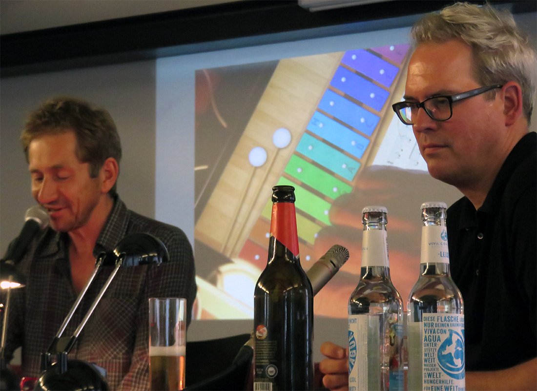 Heitere Plauderei zwischen Schorsch Kamerun und Eckard Schumacher bei der Nichtlesung