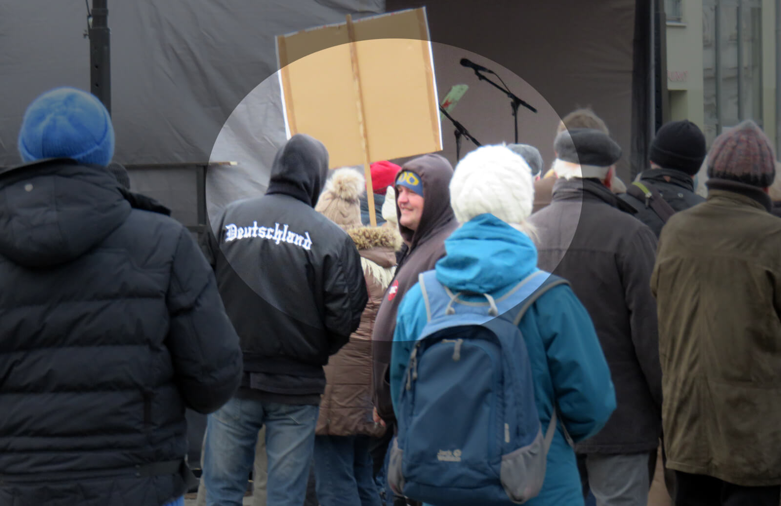 Niemand regte sich auf, als Maik Spiegelmacher sich breit grinsend in die Menschenkette der Pro-Arndt-Demonstrationen einreihte