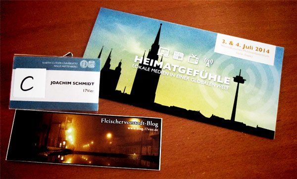 Die vergangene Woche endete für mich mit der Teilnahme an der Tagung Heimatgefühle. Lokale Medien in einer globalen Welt. Man hatte mich nach Halle (Saale) eingeladen, damit ich im Rahmen eines Speedlabs aus der Praxis des (sub)lokalen Bloggens berichte.