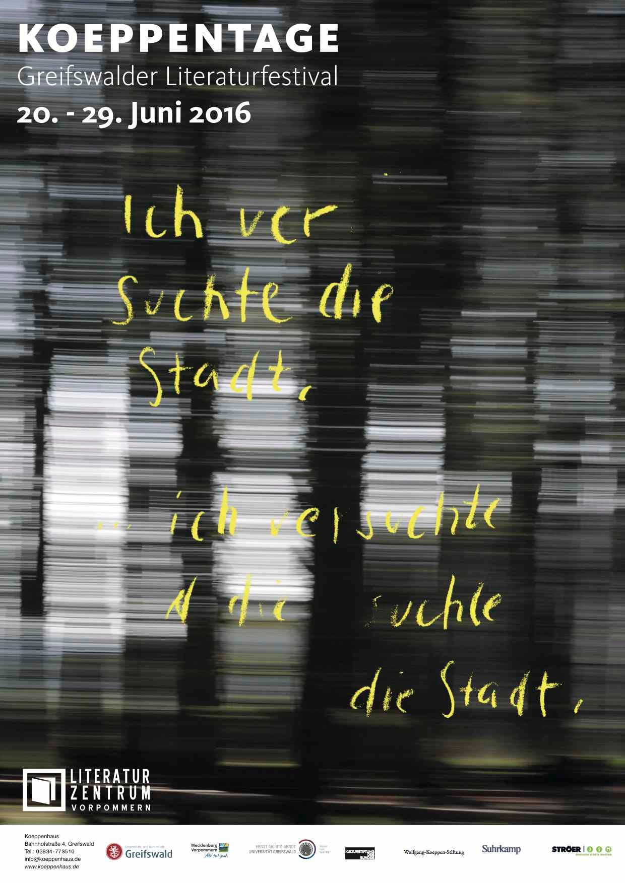 Die Koeppentage sind fester Bestandteil des Greifswalder Kulturrhythmus. Das Literaturfestival, das jährlich rund um den 23. Juni, dem Geburtstag des Schriftstellers und Greifswalder Ehrenbürgers stattfindet, wird in diesem Jahr unter dem inzwischen vielzitierten Motto „Ich versuchte die Stadt“ vom Koeppenhaus präsentiert.