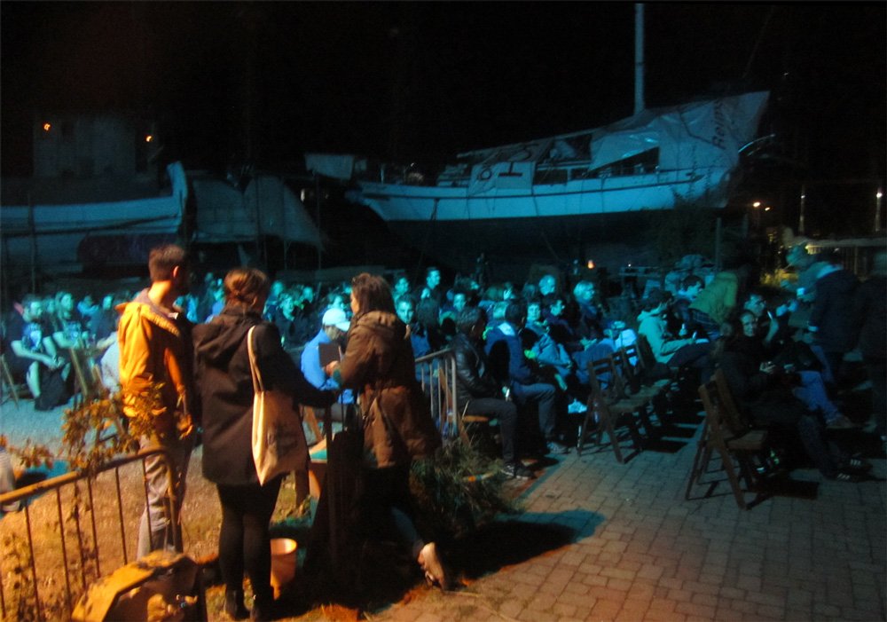 Das Kino auf Segeln entwickelt sich seit dem vergangenen Jahr vom Geheimtipp zum gut besuchten Filmspektakel unter freiem Himmel, bei dem die Filme vor dem Hintergrund der Greifswalder Stadtsilhouette auf das Segel eines Schiffs projiziert werden — authentischer geht es kaum! Momentan arbeiten die Filmaktivistinnen daran, Geld für eigene Klappstühle zu sammeln, damit der Kinogenuss nicht durch fehlende Sitzplätze geschmälert werden muss. Vor wenigen Tagen starteten sie in dieser Sache eine Crowdfunding-Kampagne, die ersten Spenden für diesen guten Zweck wurden bereits eingeworben. Für die Vorführung von Höhere Gewalt wird sicherlich eine Lösung des Bestuhlungsproblems gefunden sein, eine wärmende Decke wirkt zusätzlich vergnügungsfördernd.