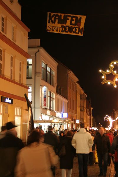 In der Brinkstraße befindet sich ein relativ neuer Bioladen, der den großmännischen Sanierungsbemühungen und den charakterlosen Neubauten seiner unmittelbaren Umgebung trotzt. Hier wurde in den Sommermonaten selbstgemachtes Eis angeboten, aber inzwischen macht sich der Herbst im Angebot bemerkbar.