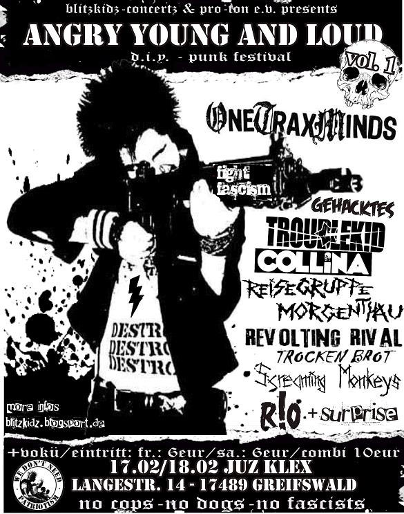 Ein ganzes Wochenende Punk und Hardcore versprechen Blitzkids Concertz, ein neugegründetes Veranstalterinnenkollektiv, das antritt, um in Greifswald ebenjene Genres mit regelmäßigen Konzerten zu bedienen — dabei ganz klar von der sogenannten Grauzone abgegrenzt und mit politischem Distanzierungskatalog (Sexismus, Antisemitismus, Homophobie) im Handgepäck.