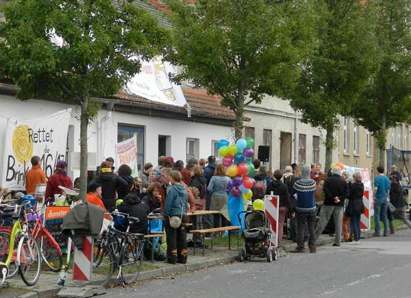 Mehr als 200 Besucher folgten am vergangenen Sonnabend einer Einladung der Initiative „Brinke 16-17 erhalten“ zu einem Straßenfest vor dem seit drei Wochen besetzten Gebäude in der Brinkstraße und erlebten dort ein unterhaltsames Nachmittagsprogramm.