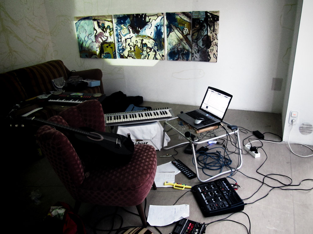 Mit einstündiger Verspätung begann er seine Loop-Performance und schickte eine Raum- und Kopfgeburt aus Ambient, Firlefanz und Frickelei in die Welt. Aus der Verborgenheit des Schaufensters heraus konnte sich Walker im Laufe des Spätnachmittags in einige Wohnzimmer stehlen. Dorthin, wo die Empfangsgeräte auf den richtigen Kanal getrimmt waren.