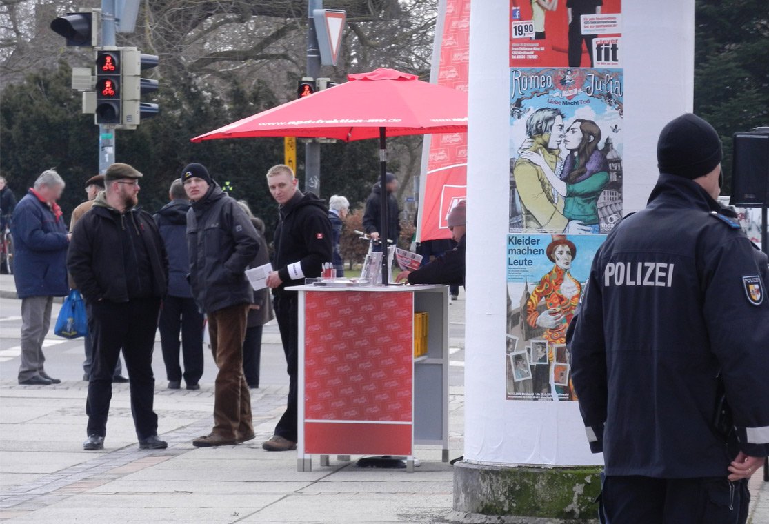 Und tatsächlich standen die lokalen Neonazis Frank Klawitter, Rene H. und Marcus G. mit ihren überregionalen Kameraden, unter anderen Enrico Harmisch, Daniel Ohm (beide Usedom) und Michael Gielnik (stellv. NPD-Landesvorsitzender) an und um den Infostand bereit, um ihr menschenverachtendes Gedankengut unter die Leute zu bringen. Der Platz war eigentlich ideal, um ins Gespräch zu kommen, zumal „Rushhour“ in Richtung Mensa herrschte; und sie bemühten sich auch sichtlich. Aber irgendwie wollten die gemeinen Greifswalder*innen nicht so recht – wie immer eigentlich! „Gastbeitrag: Brauner Frühling in Greifswald“ weiterlesen →