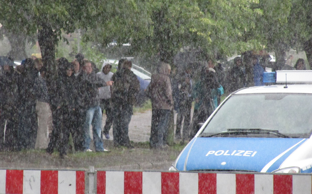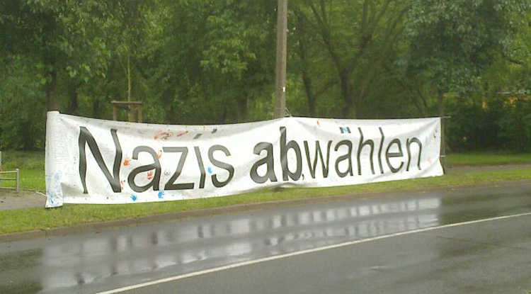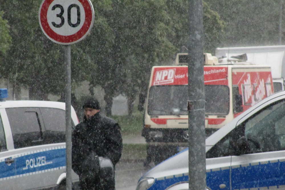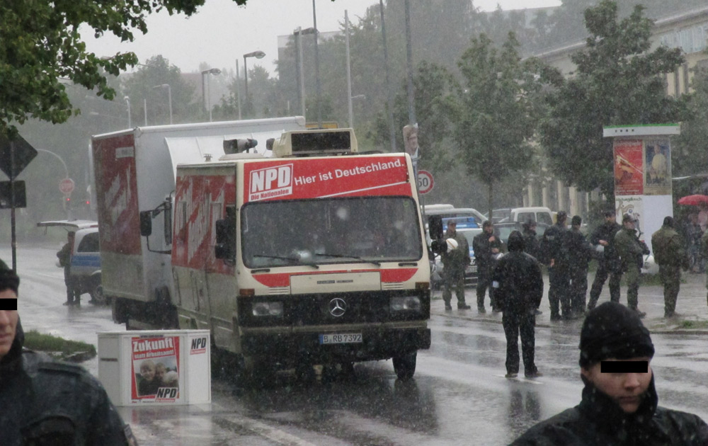 Ein kräftiger Regenguss und schon war es um die Wahlkampfbemühungen der NPD geschehen. Dabei haben sich die Neonazis so ins Zeug gelegt.