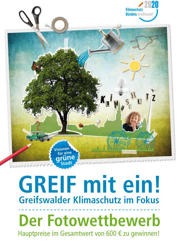 Das Greifswalder Klimabündnis ruft einen Fotowettbewerb aus und prämiert die Einsendung „visionärer Blickwinkel“ mit insgesamt 30 Geld- und Sachpreisen. Unabhängig vom Wohnsitz der Teilnehmenden können Fotos, Collagen oder Montagen, die einen regionalen Bezug zum Thema Klimaschutz mitbringen, eingereicht werden.