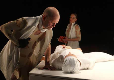 In der Inszenierung am hiesigen Haus, welche am Samstag Premiere feierte, gelingt es dem Regisseur und designierten Oberspielleiter Andrè Rößler leider nur, diese Begriffe — wenn überhaupt — oberflächlich zu behandeln. Trotz vieler inszenatorischer Einfälle — wobei einige das „klassische“ Greifswalder Publikum sicher einer Geduldsprobe unterzogen — gelingt es nur selten, dass die erzeugten Bilder der Inszenierung Emotionen transportieren, geschweige denn auslösen können.