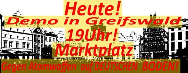 Für heute Abend wird auf der genannten Facebook-Seite für eine Versammlung unter der Losung „Gegen Atomwaffen auf DEUTSCHEN BODEN!“ [sic!] mobilisiert. Die Nachricht verbreitet sich wie ein Lauffeuer. Wer sich angesichts dieser Ankündigung um den guten Ruf der Stadt sorgt und den kruden Zusammenschluss nicht unwidersprochen durch die Stadt spazieren lassen will, kann sich einer bereits angemeldeten Gegendemonstration anschließen, die sich ebenfalls um 19 Uhr auf dem Greifswalder Marktplatz versammelt. Während sich die rechte Versammlung vor dem Alten Fritz versammelt, ist die Gegenveranstaltung vor dem Rathaus angemeldet. Say it loud and say it clear: Refugees are welcome here!