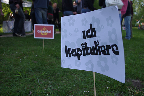 Als ob das noch nicht genug wäre, geht es am Sonntagnachmittag so ähnlich weiter, wie es in den Morgenstunden der Vornacht aufhörte. Es darf getanzt und geruht werden, denn anlässlich des historischen Datums gäbe es einiges zu feiern, wie die Hedonisten bemerken: „Die Alliierten erzwangen 1945 die bedingungslose Kapitulation des nationalsozialistischen Deutschlands und setzten der wahr gewordenen Hölle von industriellen Massenmord, totalem Vernichtungskrieg und Volksgemeinschaft endlich ein Ende. Darum feiern wir den Tag der Befreiung, das Ende des 2. Weltkrieges in Europa und die erfolgreiche Zerschlagung des 3.Reichs mit einem Tanz im Freien. Gib Geschichtsrevisionismus keine Chance!“