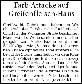 Der in Greifswald gastierende Circus Berolina ist als „Prügel-Zirkus“ bekannt. Die Elefanten, Kamele, Bären dieses Zirkus sind die leidenden, zur Dressur geschlagenen Tiere, die wir uns am Wochenende unter dem Motto „Menschen – Tiere – Sensationen“ hier in Greifswald ansehen sollen. Zirkus fasziniert – nicht ohne Grund! Artistische und sportliche Leistung, die so fernab des Alltags wunderschön inszeniert wird. Und so sieht für mich Zirkus aus: Menschen, die ganz besondere Leistungen darstellen. Und keine Menschen, die Tiere in Kostüme hüllen, zur Dressur schlagen, quälen und einsperren. Das ist nicht Zirkus, das ist Tierfolter.