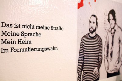 „obwohl man auch in der Hamburger Schule ein unbefangenes deutschsprachiges Textverfahren anstrebt, wird das Aufrufen von Klischees zumindest sprachlich vermieden, was einem Bruch mit Textverfahren der Neuen Deutschen Welle gleichkommt, denn in letzteren liefert das Klischee als Stilmittel idealisierte und artifizielle Bilder der Wirklichkeit.